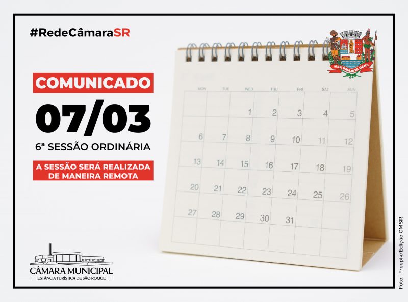 Nesta quinta-feira, dia 24 de outubro, às 11h, a Câmara Municipal da Estância Turística de São Roque realizará duas Sessões