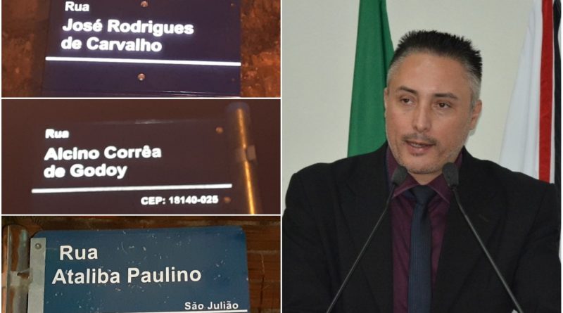 Marreiro conta que foram denominadas as ruas Ataliba Paulino, José Rodrigues de Carvalho, Alcino Corrêa de Godoy e José Carlos Massucato e que se preocupou em nominá-las porque sabe da importância disso para que novos serviços públicos sejam realizados, tais como tubulação de águas pluviais, asfalto, entre outros.