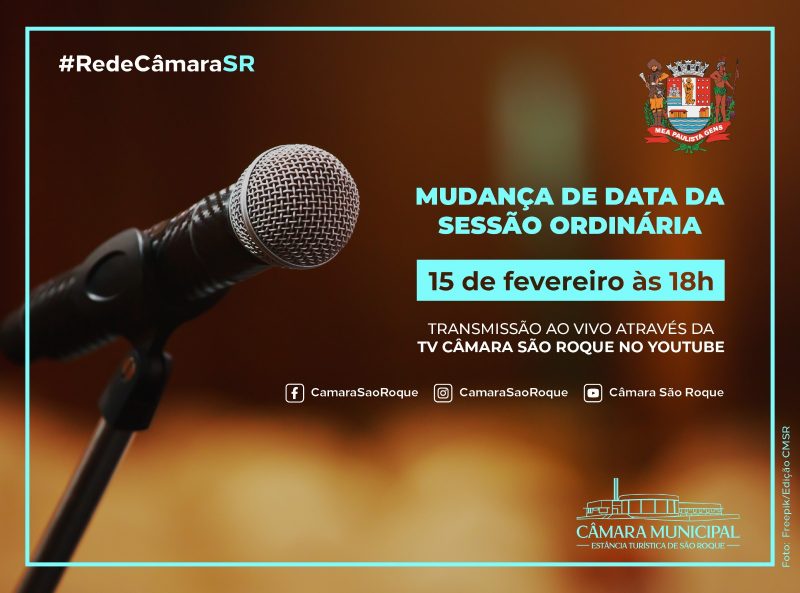 Nesta quinta-feira, dia 24 de outubro, às 11h, a Câmara Municipal da Estância Turística de São Roque realizará duas Sessões